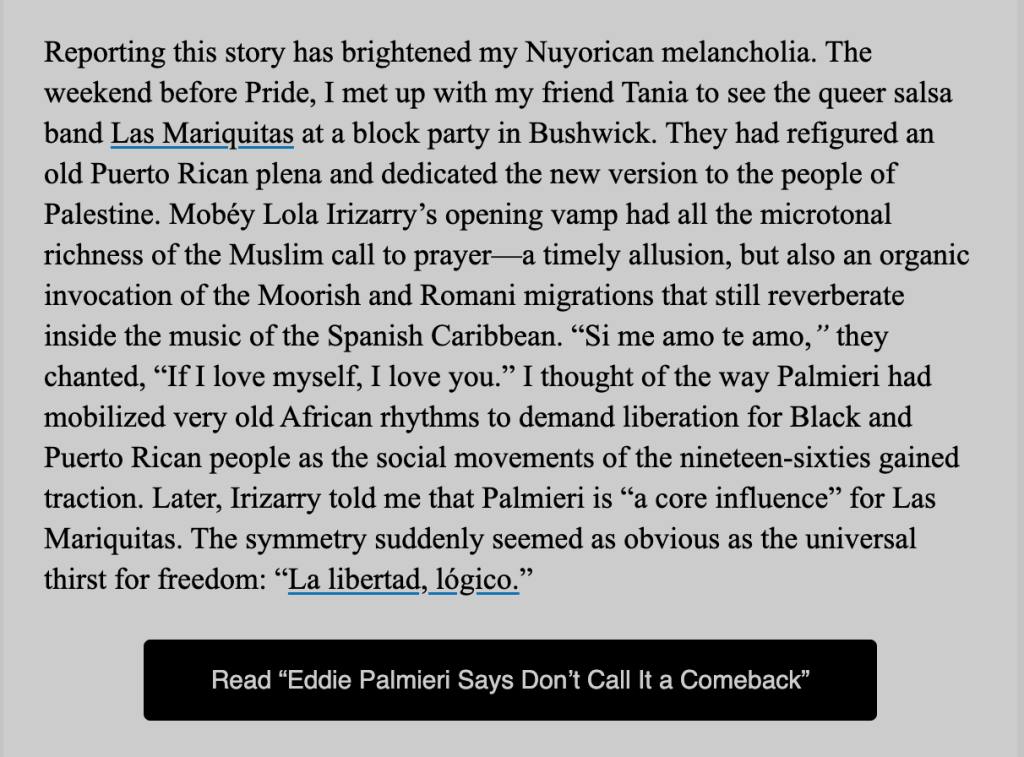 11.17.24 Eddie Palmieri Feature the New Yorker Magazine